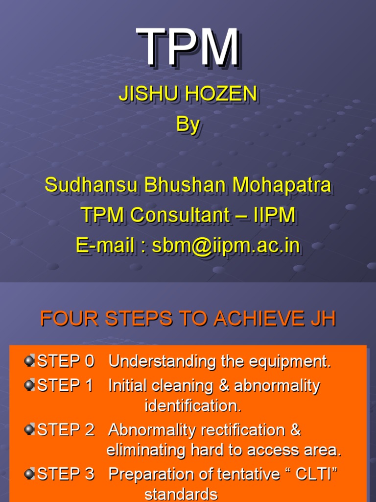 Tpm Jh Steps : Autonomous Maintenance (Jishu Hozen) - IPQI - The tpm program closely resembles the popular total quality management (tqm) program.